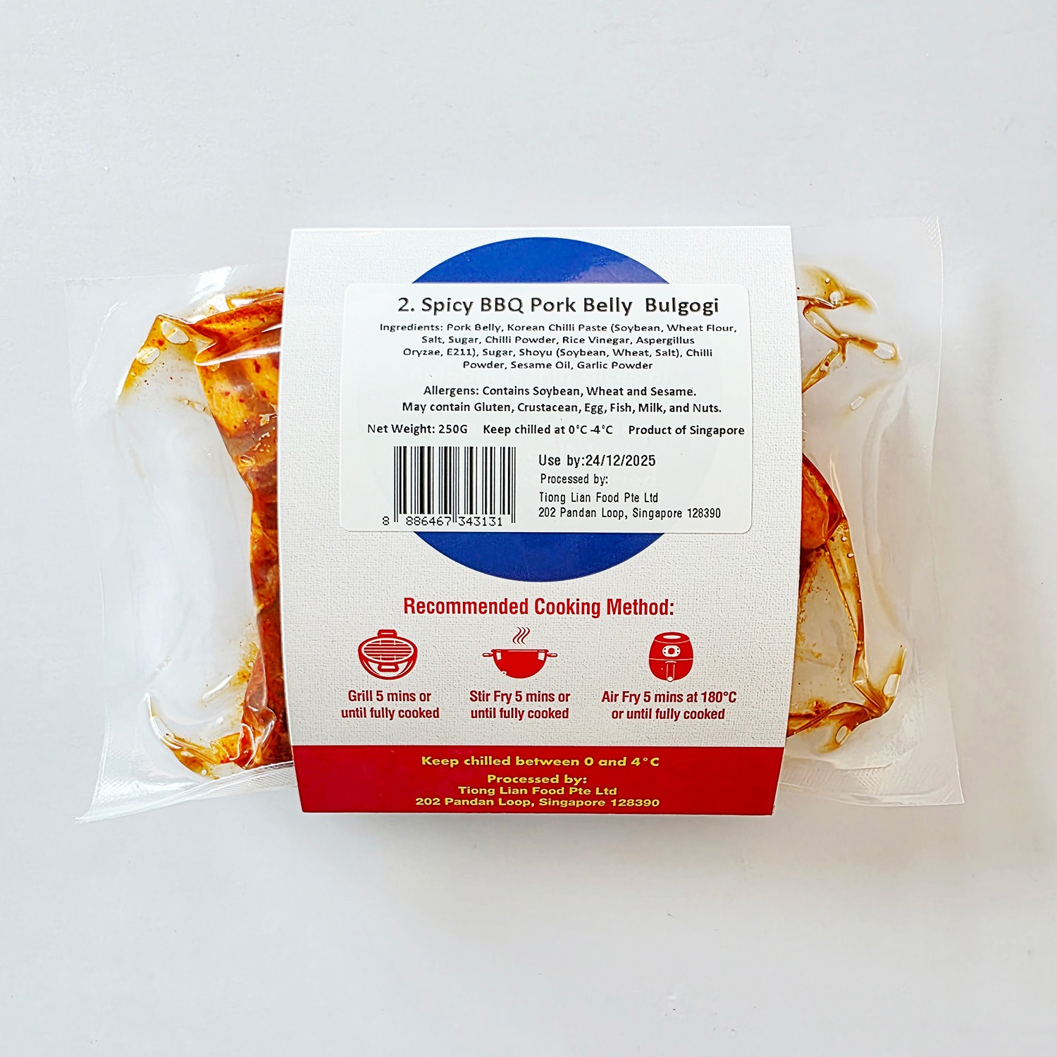 Marinated and packed fresh in our factory. Korean Pork Belly Bulgogi marinated for your convenience and is Ready to Cook. Serves 2 people. Enjoy mouthwatering bulgogi in the comfort of your home.